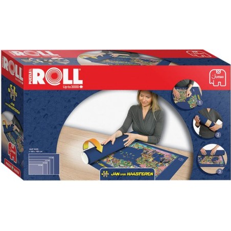 Met deze Jan van Haasteren Puzzel & Roll Puzzelmat wordt het makkelijker om puzzels op te bergen en te vervoeren. Je legt de puzzelstukjes op de mat. Wanneer je de puzzel wilt opbergen zet je de koker in elkaar en rol je de mat om de koker heen. Met de sluitstrips om de rol heen blijft de mat netjes op zijn plaats.