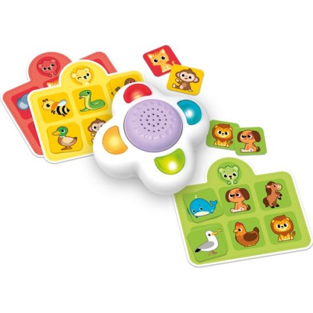 Duik in de spannende wereld van Bingo-dieren, waar je alles over dieren kunt ontdekken! Deze interactieve versie van het klassieke bingospel heeft een elektronisch geluidsapparaat, 4 dierenborden en 24 fiches, waardoor het perfect is voor het spelen met familie, vrienden of alleen.