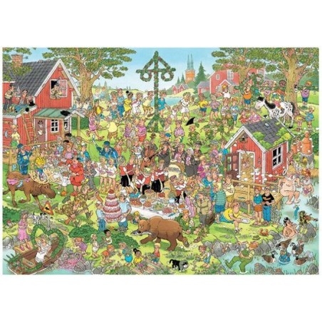 De Jan Van Haasteren Familie Is Op Vakantie In Scandinavië En Bezoekt Het Midzomer Festival En Ervaart De Magie Van De Langste Dag Van Het Jaar. Een Band Speelt Traditionele Muziek, Er Wordt Gedanst En De Meiboom Is Opgetuigd. Schoonmoeder Is Te Vinden Bij De Tafel Vol Met Lekkers,