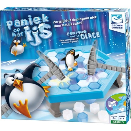 Zorg jij dat de pinguin niet door het ijs zakt? Tik strategisch de blokjes weg! Geef een draai aan het rad en kijk wat je opdracht is. Mag je een blokje wegtikken van de witte of grijze kleur, mag je zelf kiezen of moet je een beurt overslaan? Om de beurt mag je aan het rad draaien en je voert steeds de opdracht uit die de pijl aanwijst. De speler die de pinguin van het ijs laat vallen verliest het spel!