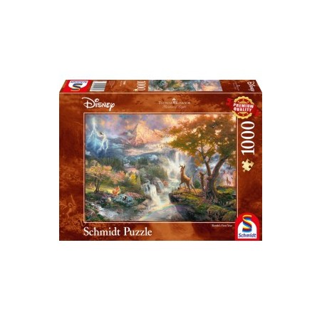 Puzzel Bambi (1000 stukjes). In deze prachtige lijn van Premium Quality-puzzels van Schmidt brengt Thomas Kinkade, de “painter of light”, de sfeer van verschillende Disney-verhalen perfect over. Door de zeer nauwkeurig gesneden stukjes zijn de puzzels na gebruik met 2 vingers op te tillen en ingelijst aan de muur te hangen. Alle puzzels bestaan uit 1000 stukjes en garanderen vele uren puzzelplezier!