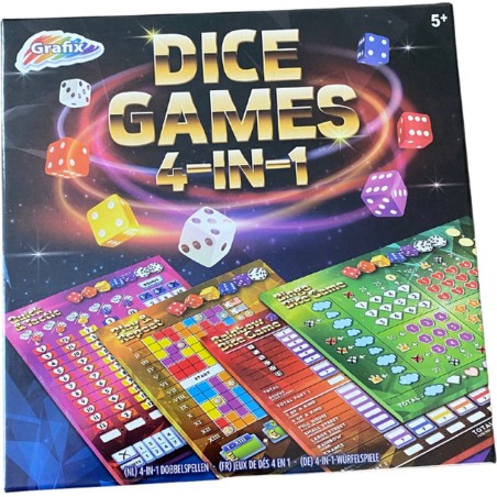 - Uren speelplezier met dit 4-in-1 dobbelsteenspel.