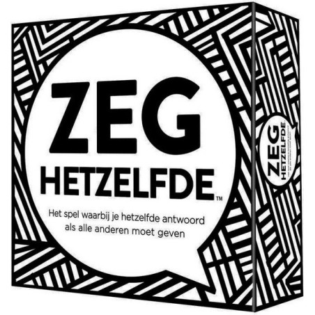 Zeg Hetzelfde partyspel - Hygge Games Een voornaam die met een S begint. Een liedje van ABBA. Een dier in de dierentuin. Een weekdag. Wat denk je dat je medespelers zullen antwoorden? Zeg hetzelfdeTM is een snel, leuk en vermakelijk spel waarbij het doel is om het antwoord te geven waarvan je denkt dat de meeste andere spelers het ook zullen geven. Hoe meer mensen hetzelfde zeggen als jij, hoe meer punten.